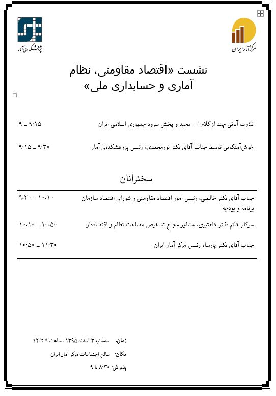 اقتصاد مقاومتی میتواند الگویی الهام بخش از نظام اقتصادی اسلام بوده و فرصت مناسبی را برای نقش آفرینی مردم و فعالان اقتصادی در تحقق حماسه اقتصادی فراهم کند. بدیهی است که این مهم بدون ایجاد ظرفیتهای لازم برای تدوین اهداف کمی و نظارت عالمانه مستمر بر تحقق اهداف تبیین شده حاصل نمیشود. بیشک نظام آماری کشور میتواند نقش بیبدیلی در تدوین برنامههای مربوط به سیاستهای اقتصاد مقاومتی داشته باشد و با رصد فعالیتها براساس شاخصهای تبیین شده، مقام معظم رهبری و دولت محترم، بویژه ستاد فرماندهی اقتصاد مقاومتی و سازمان برنامه و بودجه را از روند پیشرفت سیاستها آگاه نماید.