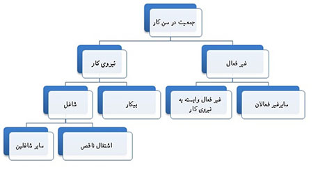 وی اشاره کرد در این چارچوب علاوه بر تجزیه جمعیت در سن کار به نیروی کار و جمعیت غیر فعال و تجزیه نیروی کار به اشتغال و بیکاری، اشتغال را خود به اشتغال ناقص و سایر اشتغال و جمعیت غیر فعال نیز به غیرفعالان وابسته به نیروی کار و سایر غیرفعلان تقسیم بندی شده است. به این ترتیب همسایگان بیکاری از طرفی اشتغال ناقص و از طرف دیگر غیر فعالان وابسته به نیروی کار به حساب می آیند که مجموع بیکاری و همسایگانش «کم بهره وری از نیروی کار» نام گذاری شده است.