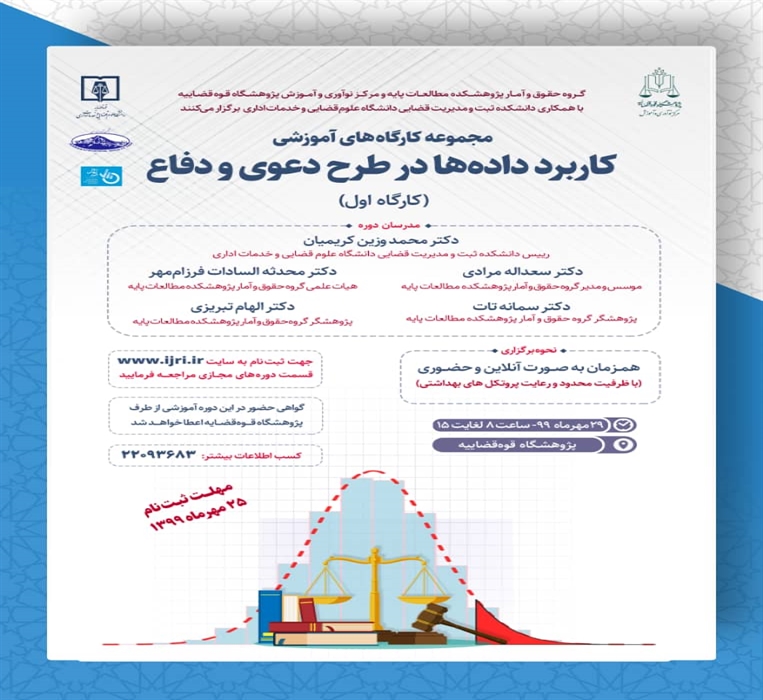 مجموعه کارگاه های آموزشی «کاربرد داده ها در طرح دعوی و دفاع» در روز سه شنبه 29 مهر ماه 1399 از ساعت 8 تا 15 برگزار می شود.