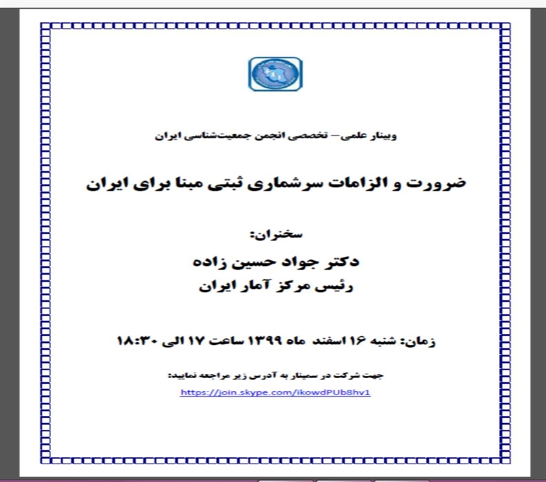 وبینار «ضرورت و الزامات سرشماری ثبتی مبنا برای ایران»