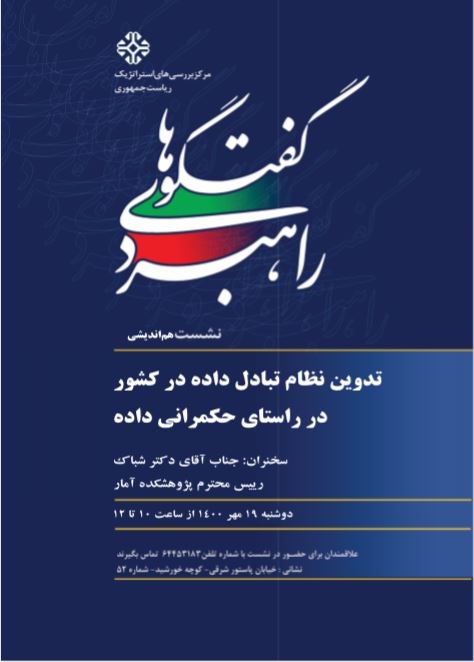 نشست هماندیشی با موضوع «تدوین نظام تبادل داده در کشور در راستای حکمرانی داده» در روز دوشنبه 19 مهرماه 1400 با حضور و سخنرانی: دکتر اشکان شباک، رییس پژوهشکده آمار برگزار میشود.