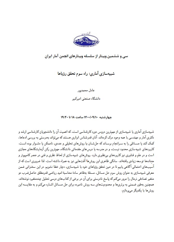 وبینار علمی _ تخصصی «شبیه‌سازی آماری: راه سوم تحقق رویاها»