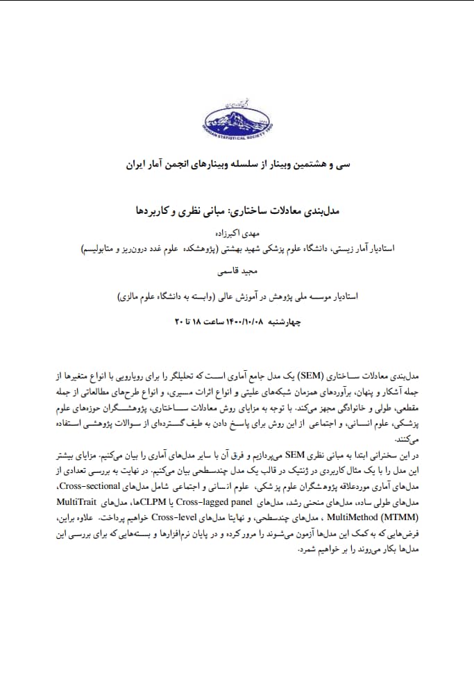 وبینار علمی _ تخصصی «مدلبندی معادلات ساختاری: مبانی نظری و کاربردها»