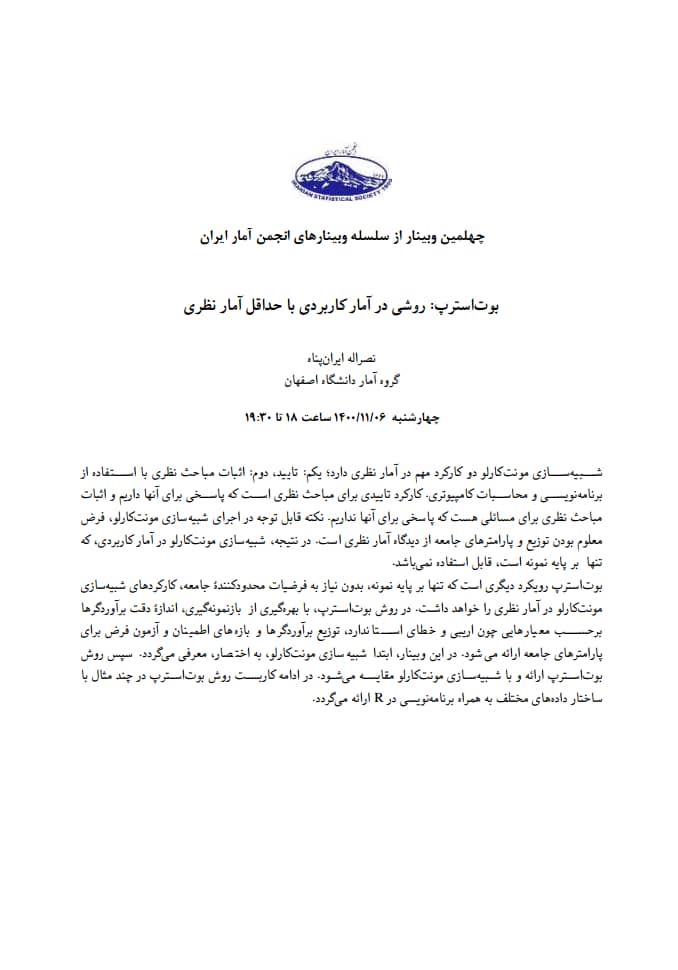 وبینار علمی _ تخصصی «بوتاسترپ: روشی در آمار کاربردی با حداقل آمار نظری»