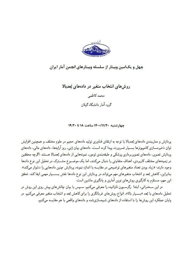 وبینار علمی _ تخصصی «روشهای انتخاب متغیر در دادههای بعد بالا»