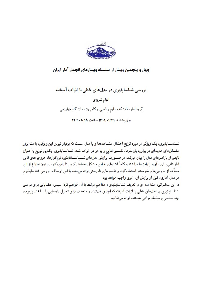 وبینار علمی _ تخصصی «بررسی شناساپذیری در مدلهای خطی با اثرات آمیخته»