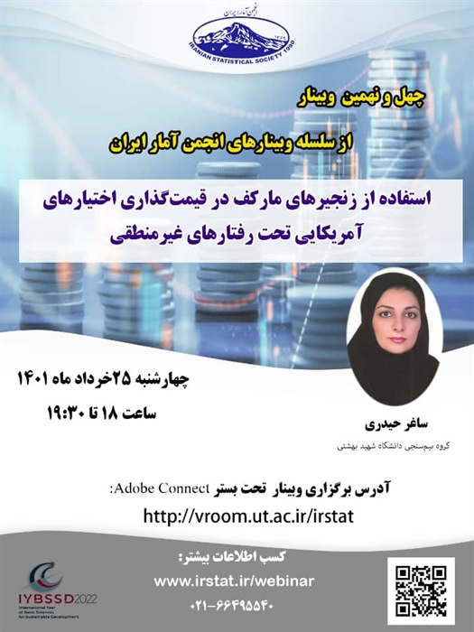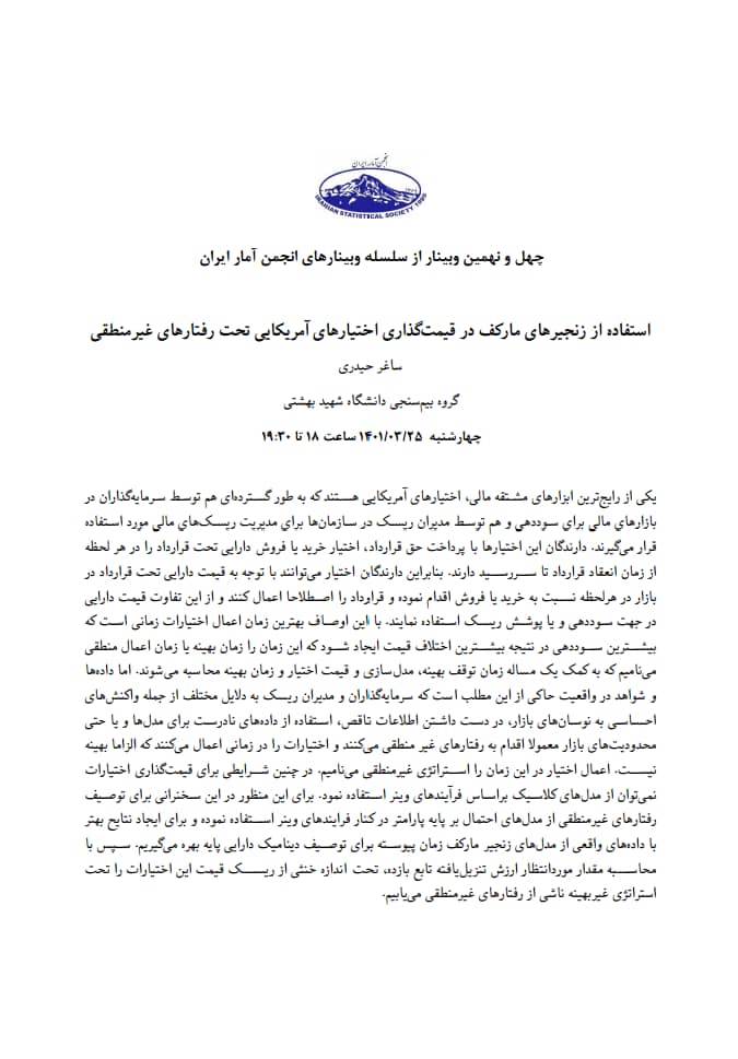 وبینار علمی _ تخصصی «استفاده از زنجیرهای مارکف در قیمت گذاری اختیارهای آمریکایی تحت رفتارهای غیرمنطقی»
