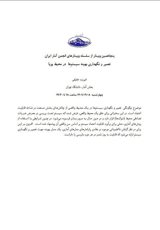 وبینار علمی _ تخصصی «تعمیر و نگهداری بهینه سیستمها در محیط پویا»