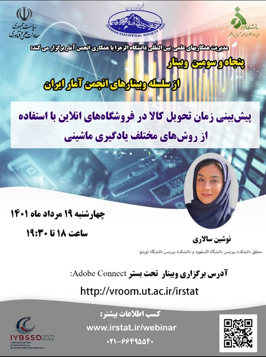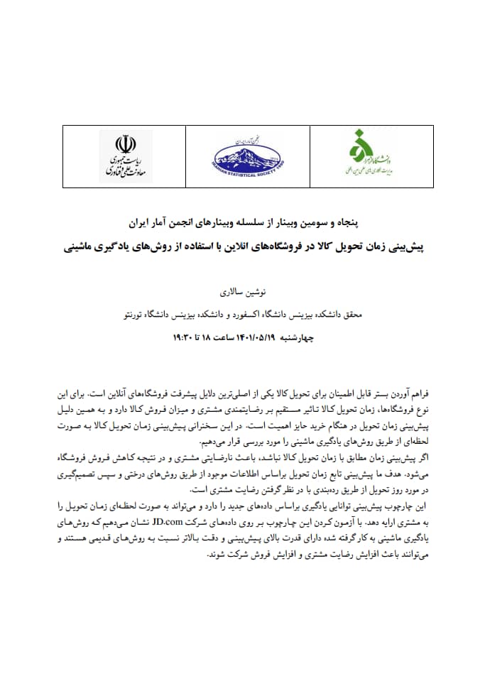 وبینار علمی _ تخصصی «پیش بینی زمان تحویل کالا در فروشگاه های آنلاین با استفاده از روش های مختلف یادگیری ماشینی»
