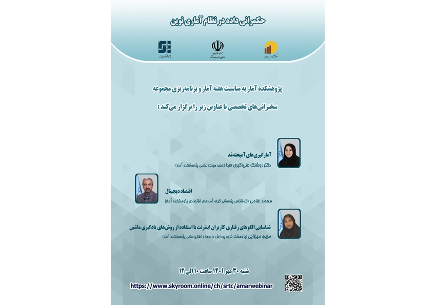 پژوهشکده آمار در نظر دارد به مناسبت فرارسیدن هفته آمار و برنامهریزی، سه سخنرانی تخصصی علمی به شرح زیر برگزار نماید. از علاقهمندان محترم دعوت میشود در این برنامهها که بهصورت مجازی برگزار می شود حضور بهم رسانند.