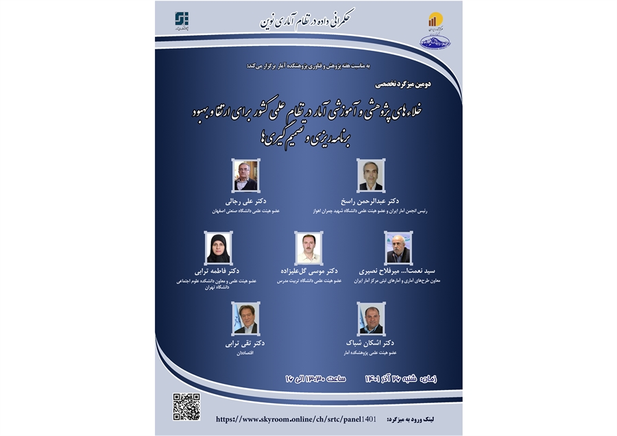 پژوهشکده آمار دومین میزگرد تخصصی «خلاءهای پژوهشی و آموزشی آمار در نظام علمی کشور برای ارتقاء و بهبود برنامه‌ریزی و تصمیم‌گیری‌ها» را به مناسبت هفته پژوهش و فناوری برگزار می‌کند