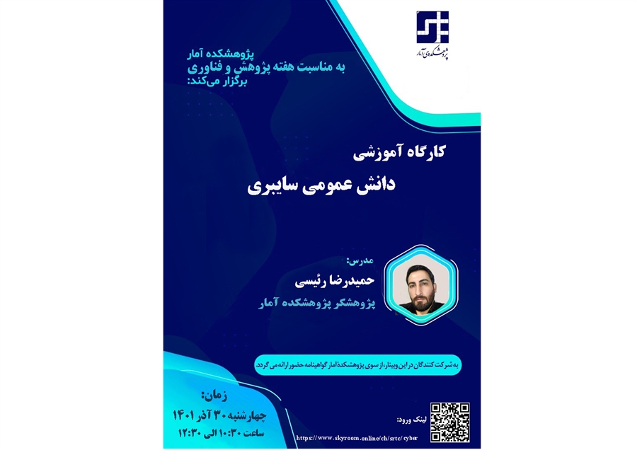 پژوهشکده آمار به مناسبت هفته پژوهش و فناوری کارگاه آموزشی «دانش عمومی سایبری» برگزار میکند