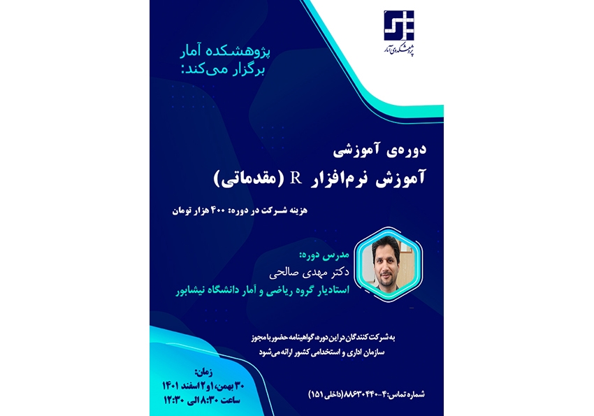 • پژوهشکده آمار دوره‌ی آموزشی «آموزش نرم‌افزار R (مقدماتی)» را برگزار می‌کند