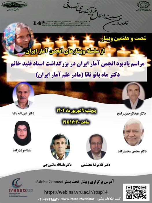 وبینار «مراسم یادبود انجمن آمار ایران در بزرگداشت استاد فقید خانم دکتر ماه بانو تاتا (مادر علم آمار ایران)»