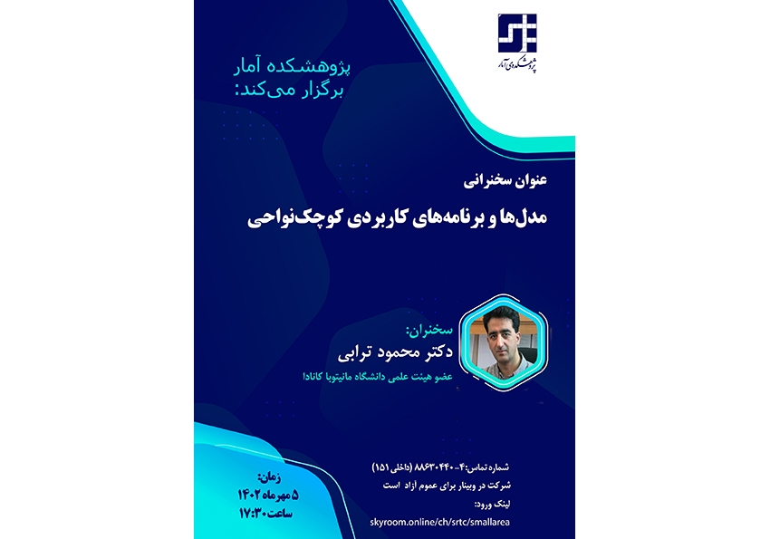 پژوهشکده آمار سخنرانی «مدل‌ها و برنامه‌های کاربردی کوچک‌نواحی» را به‌صورت مجازی برگزار می‌کند