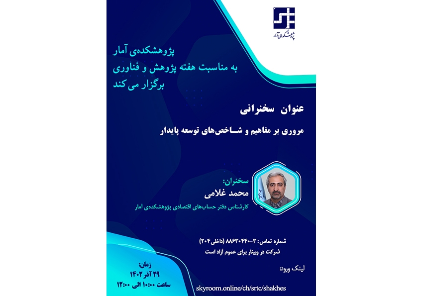 پژوهشکده آمار به مناسبت هفته پژوهش و فناوری سخنرانی با عنوان «مروری بر مفاهیم و شاخصهای توسعه پایدار» برگزار میکند
