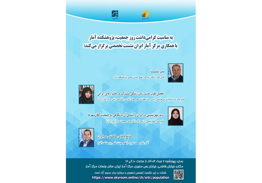 به اطلاع میرساند نشست تخصصی که بهمناسبت گرامیداشت روز ملی جمعیت در تاریخ دوم خرداد ۱۴۰۳ برنامهریزی شده بود، لغو و زمانبندی جدید این نشست تخصصی متعاقباً اعلام خواهد شد.
